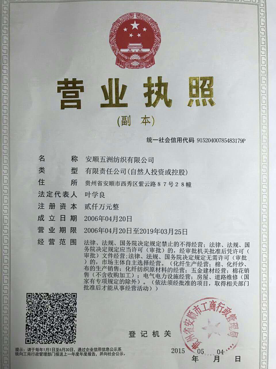 安顺五洲纺织有限公司位于安顺市西秀区紫云路87号(原安顺棉纺厂内),成立于2006年4月20日,注册资金2000万元,占地面积200.32亩,建筑面积100亩。公司属于原安顺棉纺厂,改制后经该公司整体收购原安顺利达纺织有限公司组建的民营企业。
